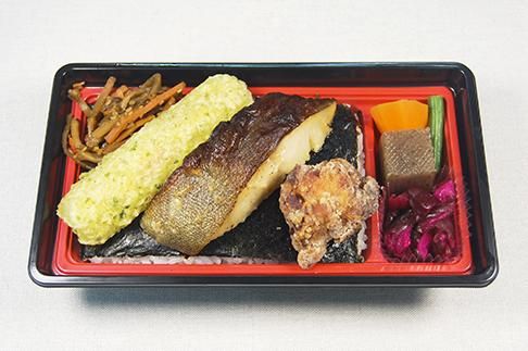 脂の乗った銀だらを西京焼きで味付けした魚の海苔弁当。